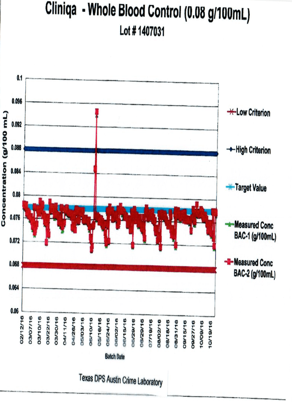 The .08 whole blood control on Monday (5/23/16) was sampled using only ½ the appropriate amount and tested at .04 rather than .08. Therefore, the .08 control was not working during the batch of tests. That’s a problem for every piece of data collected from this test, especially since it was the only blood control.